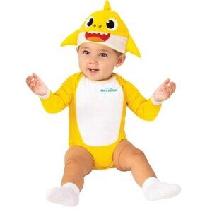 Fun Pinkfong Baby Shark Halloween Costume Officially Licensed by Nickelodeon Brand New In a Bright yellow this onesie romper with long sleeves is a comfy body suit and comes with a adorable colorful shark headpiece cap Unisex Infant 0-6 Months