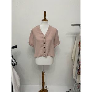 Pink front button flowy cute casual semi-cropped top medium 6