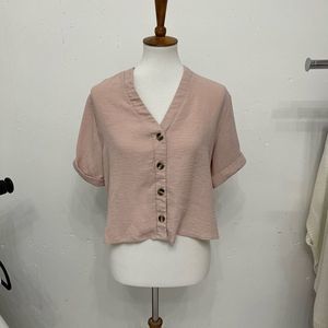 Features: pink semi crop top button from