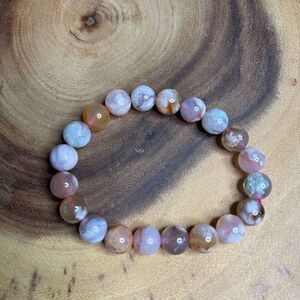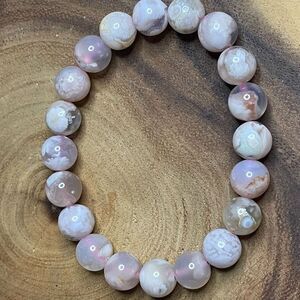 Pink green Flower Agate stretch beaded bracelet 7” crystal healing beads 8mm ONE