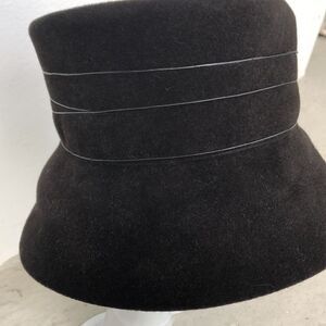 Super cute belt hat that can be worn with a broom, rolled up or like a bucket. It’s in great condition. Measures approximately 7 inches.