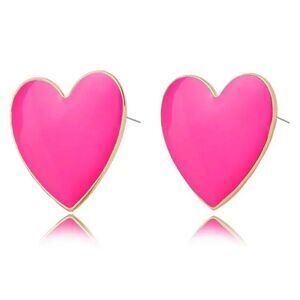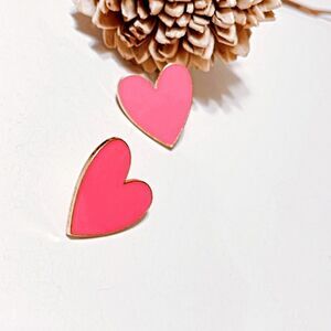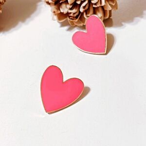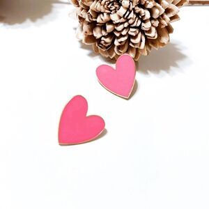 Pink heart enamel earrings in gold tone