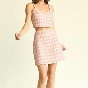 Pink houndstooth skirt set