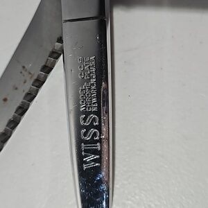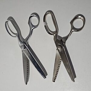 Two gently used pinking shears. each is 9" long, heavy duty and sharp.