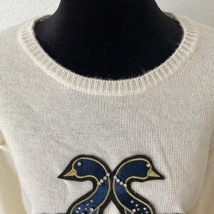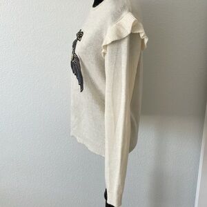 Pinko $325 Cashmere Embellished Peacock Ruffle Sleeve Sweater 0050