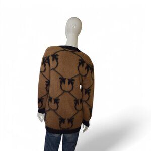 Pinko Beige & Black Wool Mohair Knit V Neckline Cardigan Cardi Jacket size M