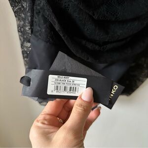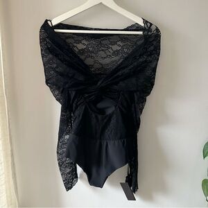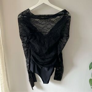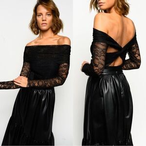 Pinko Black Lace Off-Shoulder Bodysuit with Twist Back