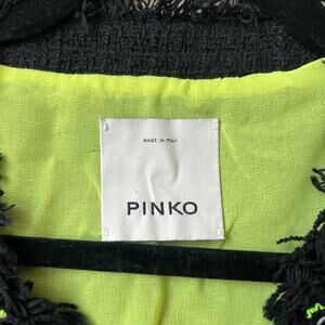 Pinko Black Neon Green Tweed Stripe Fringe Blazer Jacket Size US 4