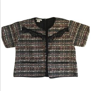 Pinko Italy Tweed Bolero Blazer Jacket Wool Blend Lace Details French Girl Chic