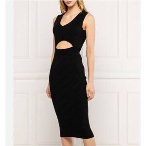 Pinko NEW Nauru Abito Black Dress LBD Size Medium Italy Cut Out Midi Designer