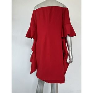 Pinko Red Dress Off The Shoulder Ruffle Detail Flutter Sleeve Womens 8