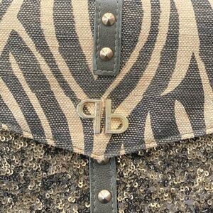 Pinko Shoulder Bag Clutch Animal Print and Sequins with Goldtone Chain