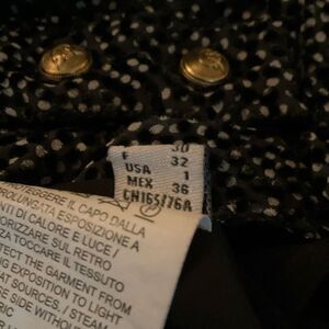 Gold-tone button detail at shoulder and cuffs