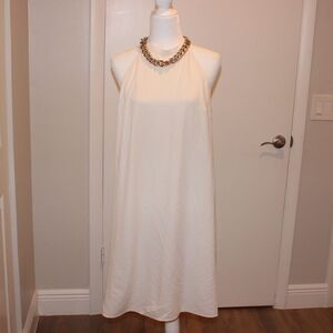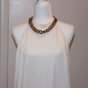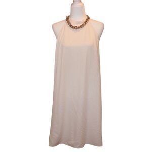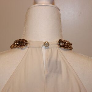 Pinko Size 10 Cream Halter Chain Neck Dress | Elegant Cocktail Party Midi