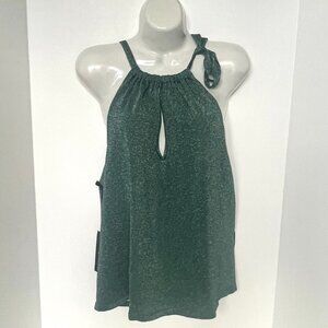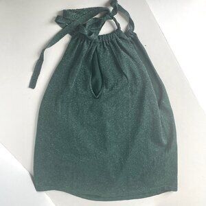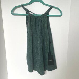 Pinko Valdemoro Lurex Knit Halter Top Green Metallic Sleeveless S