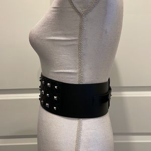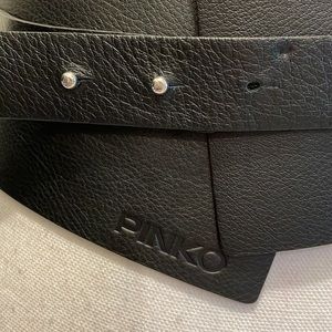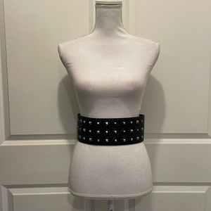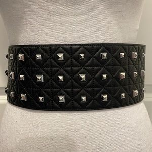 Pinko Wide Black Belt with Silver Studs. Made in Italy of Genuine Leather. 3.5" wide. Studded.