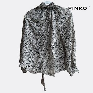 Chic and elegant leopard print blouse by Pinko, featuring a soft, lightweight feel and stylish neck tie detail. Perfect for both professional and casual outfits.