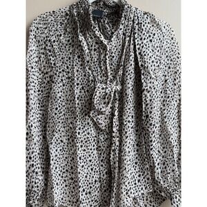 Pinko Women's Leopard Print Long Sleeve Blouse with Neck Tie – Size US 1 (S/XS)