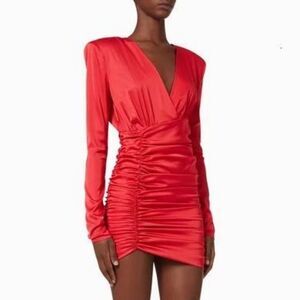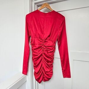 Pinko Zanzibar Satin Ruched Long Sleeve Party Cocktail Mini Dress in Red