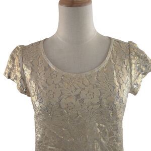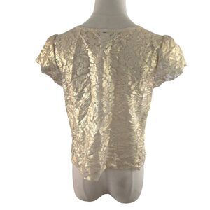 Perfect holiday top. Cream Lace with an overlay of gold. Has some stretch. Good overall condition