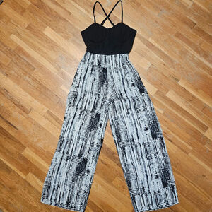 Pinky Jumpsuit Womens Small Black White Flowy Wide Leg Babydoll Abstract Artsy