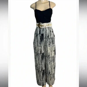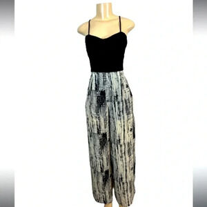 Pinky Jumpsuit black&cream print spaghetti strap sleeveless polyester size small
