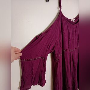 Features: gauzy material, off shoulder, adjustable straps, mini / above the knee, adjustable straps, long sleeves