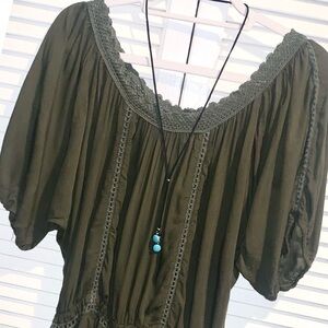 Pinky Olive Green Boho crochet Blouse Women’s Medium