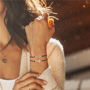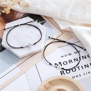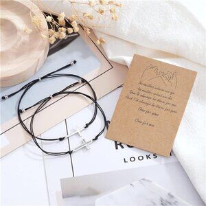 *IMPORTED MATERIAL - Made of High-Quality Smooth Korea Black Cord and Cross Charm, This relationship far distance handmade bracelets set can be shared with your best friends, couple, family members, siblings, sister, lover