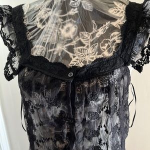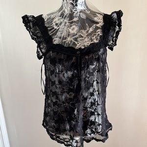 Pinky size XL black lace sleeveless top w/ ruffle at sleeve working buttons
