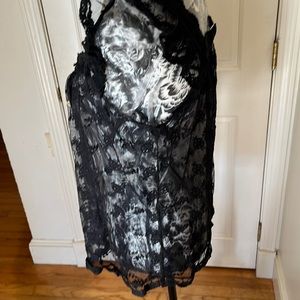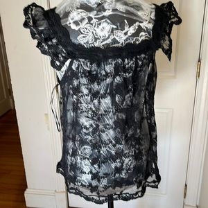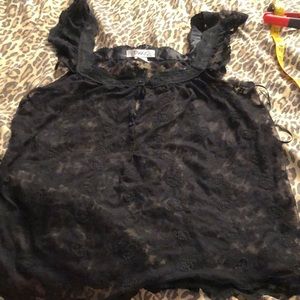 Pinky size XL black lace sleeveless top semi sheer with ruffle at sleeve
