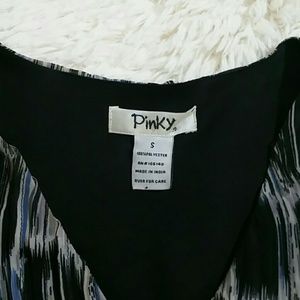 Pinky shift dress in multi color print. Fully lined. Lightweight. Comfortable work wear. Side pockets. In excellent condition. 34 inches from shoulder to hem.