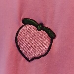 Short sleeve cotton top with a Beautifully embroidered peach in a pinky/peach color, size M from Miss Zhang.