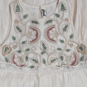 INCREDIBLE Whimsical Fairycore Pinnacle Floor Length Boho Cream Teired Mul Maxi Dress with Hand Embroidered Empire Waist Bodice & Dainty Lace Trim