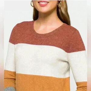 •Style Profile: Pinque Gina Crewneck Pullover Striped Sweater Size Medium Fall Soft Cozy Classic