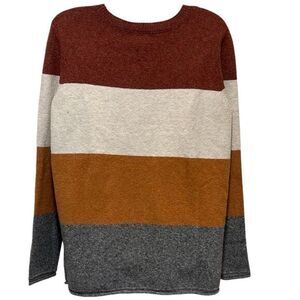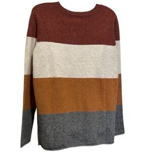 Pinque Gina Womens Sweater XL Crew Neck Striped Pullover Rust Stone Combo NWT