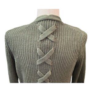 Pinque Jamelya Ribbon Criss Cross Back Cardigan~Size XS~Shaded Moss~New L9 25