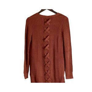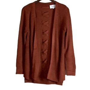 Pinque Jamelya Women's Cross Stitch Cardigan Open Ribbed Rust Size S NWOT