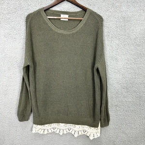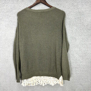 Pins & Needles Anthro Tunic Sweater Women Small Green Lace Trim Oversized Earthy Boho Grunge 90s