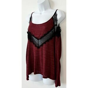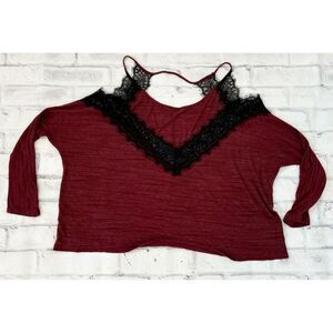 Pins & Needles Cold Shoulder Mixed Media Burgundy Lace Top Womens Medium