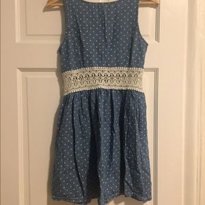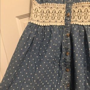 Sleeveless button down denim dress with hidden side pockets and detailed cutout