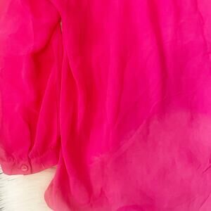 Pins and Needles by Urban Outfitters hot pink sheer button down 3/4 sleeve blouse. High-low style. Ruching pleats on shoulders.