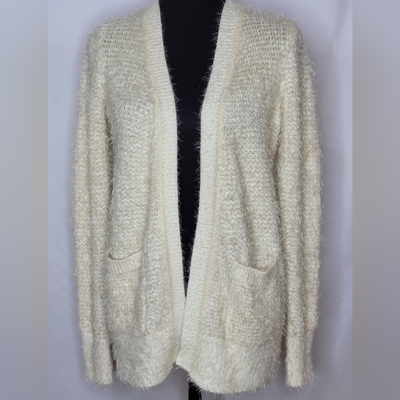 Pins & Needles Urban Outfitters Cream Soft Eyelash Open Front Caridgan - Size XS