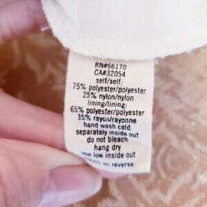 Short sleeve. Back zip closure with hook and eye.