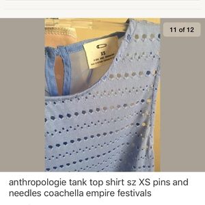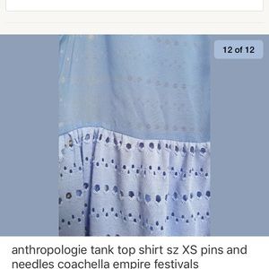 Light blue color, Cutout style throughout, empire waist, sheer upper back with button closure, sleeveless, light weight