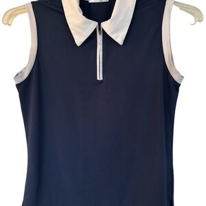sleeveless polo shirts are designed with stylish half zip up V-Neck. curved waist design with split side hems.