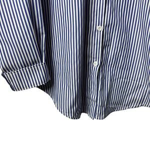 Pinstriped Blue and White Button Down Womens Shirt Blouse Plus 2XL Preppy Classy