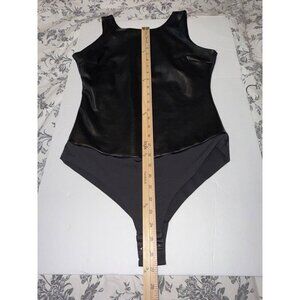 Pinsy Veegan Leather High Neck Shapewear Bodysuit Black Large Tiny Flaw