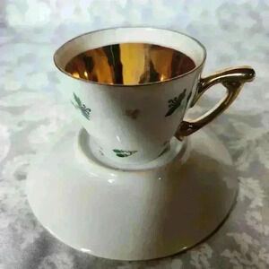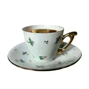 This exquisite cup and saucer set is a true work of art. The intricate hand-painted design in 24K gold adds a touch of elegance to any occasion. The set is perfect for hot beverages and includes one small cup and one saucer.