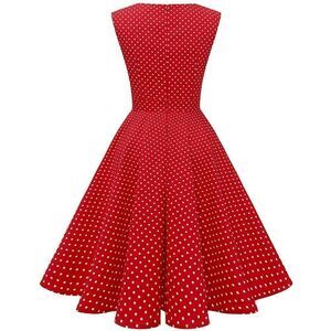 Women's Scoop Neck Sleeveless Button Decor Tea Dress Pinup Retro Vintage 1950s 60s Swing Cocktail Rockabilly Polka Dot Red Dress